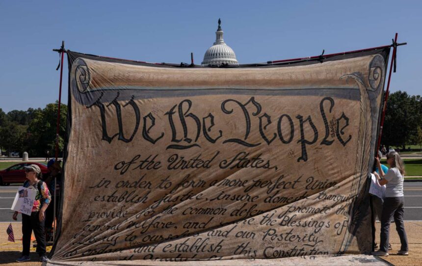 Demonstrators march down Pennsylvania Road all through the overall leg of the We Are The united states March, on September 19, 2025.